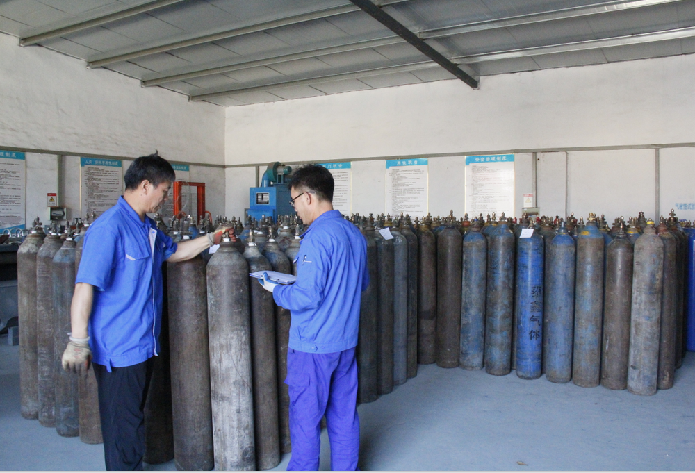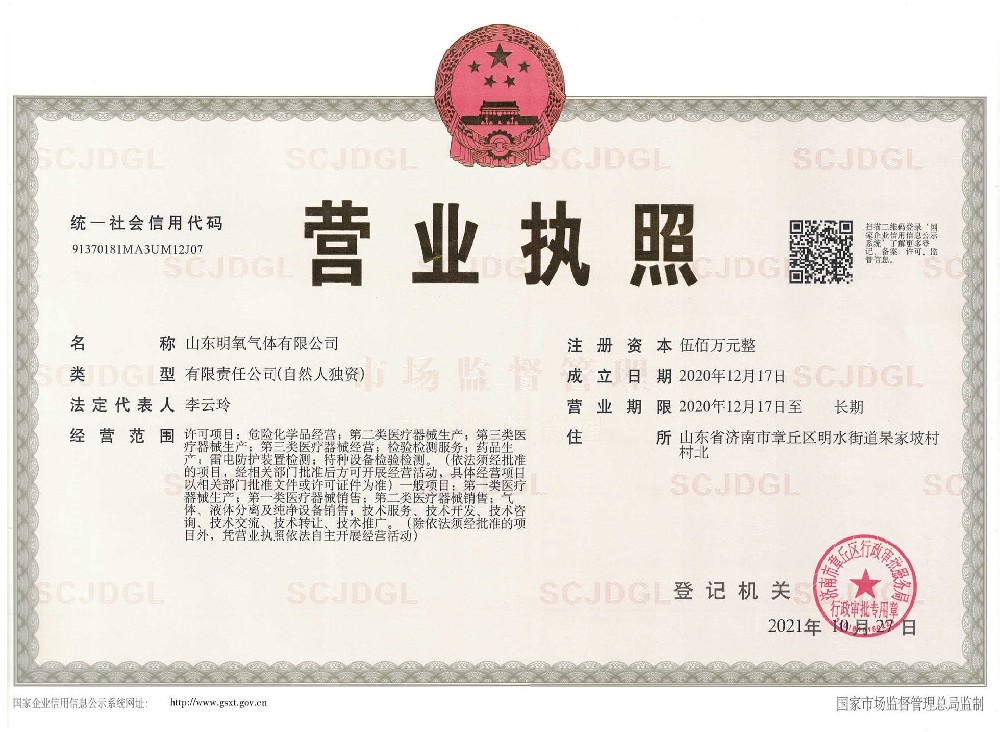 ??? 山東明氧氣體有限公司的前身為始建于1993年的章丘市明水氧氣廠(chǎng),2020年12月企業(yè)由民營(yíng)獨(dú)資轉(zhuǎn)型升級(jí)為山東明氧氣體有限公司,企業(yè)進(jìn)入新的發(fā)展階段。公司位于山東省濟(jì)南市章丘區(qū)明水街道杲家坡村村北,占地面積4000平方米,注冊(cè)資金500萬(wàn)元,固定資產(chǎn)投資3000萬(wàn)元,主要經(jīng)營(yíng)項(xiàng)目為醫(yī)用氧氣、工業(yè)氧氣、氮?dú)狻⒏呒兊獨(dú)狻鍤狻⒏呒儦鍤狻⒏呒兒狻⒍趸肌⒒旌蠚怏w等各種工業(yè)氣體、高純氣體、混合氣體的充裝銷(xiāo)售、各類(lèi)氣瓶的銷(xiāo)售、安全閥校驗(yàn)、鋼質(zhì)無(wú)縫氣瓶的檢驗(yàn)等。